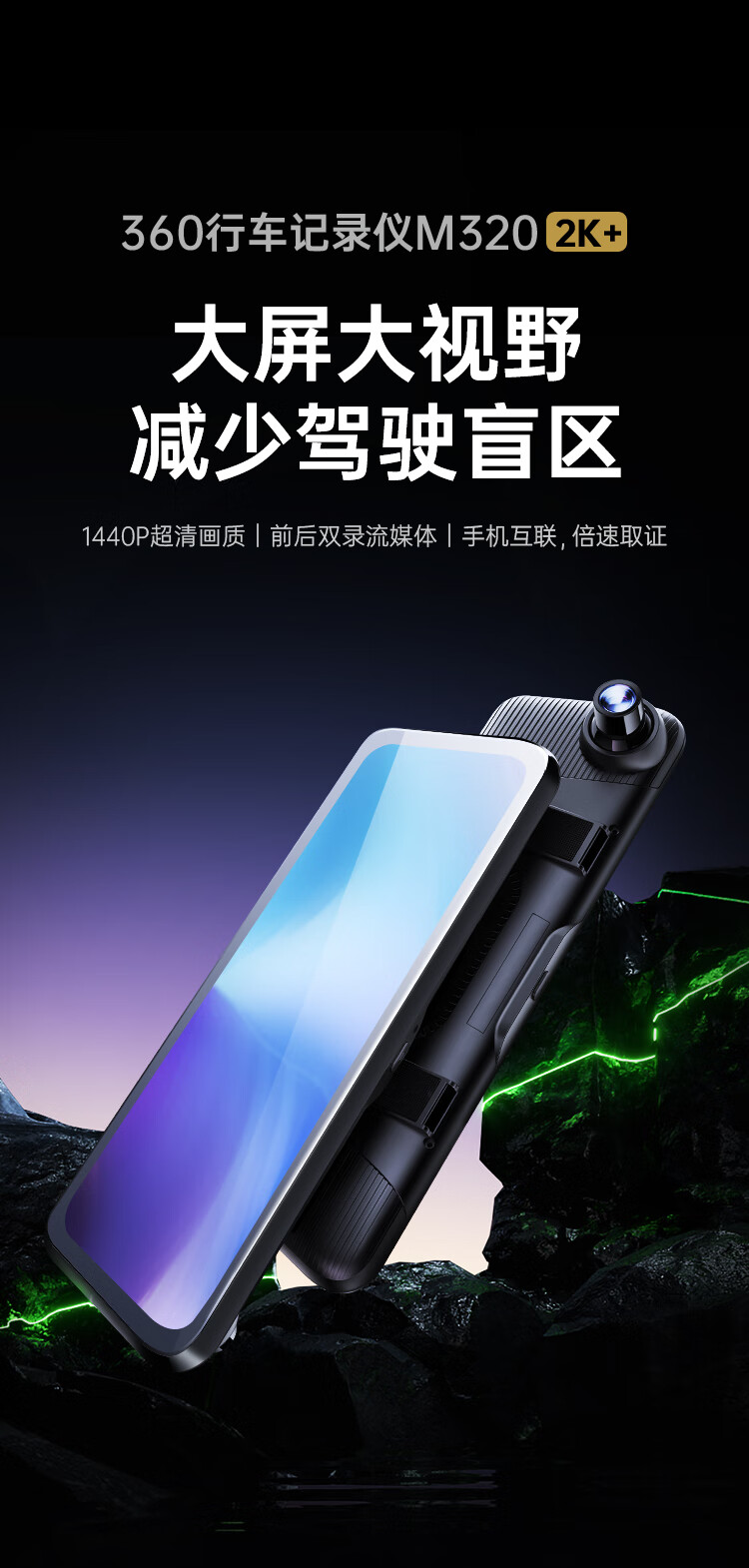 360行车记录仪M320 2K+高清夜视前后双录流媒体后视镜+128G卡