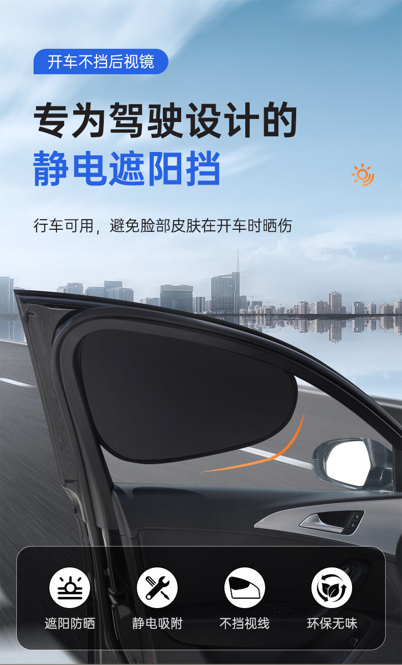 汽车遮阳挡前窗遮阳帘防晒隔离侧窗太阳帘黑胶静电吸附防晒专用