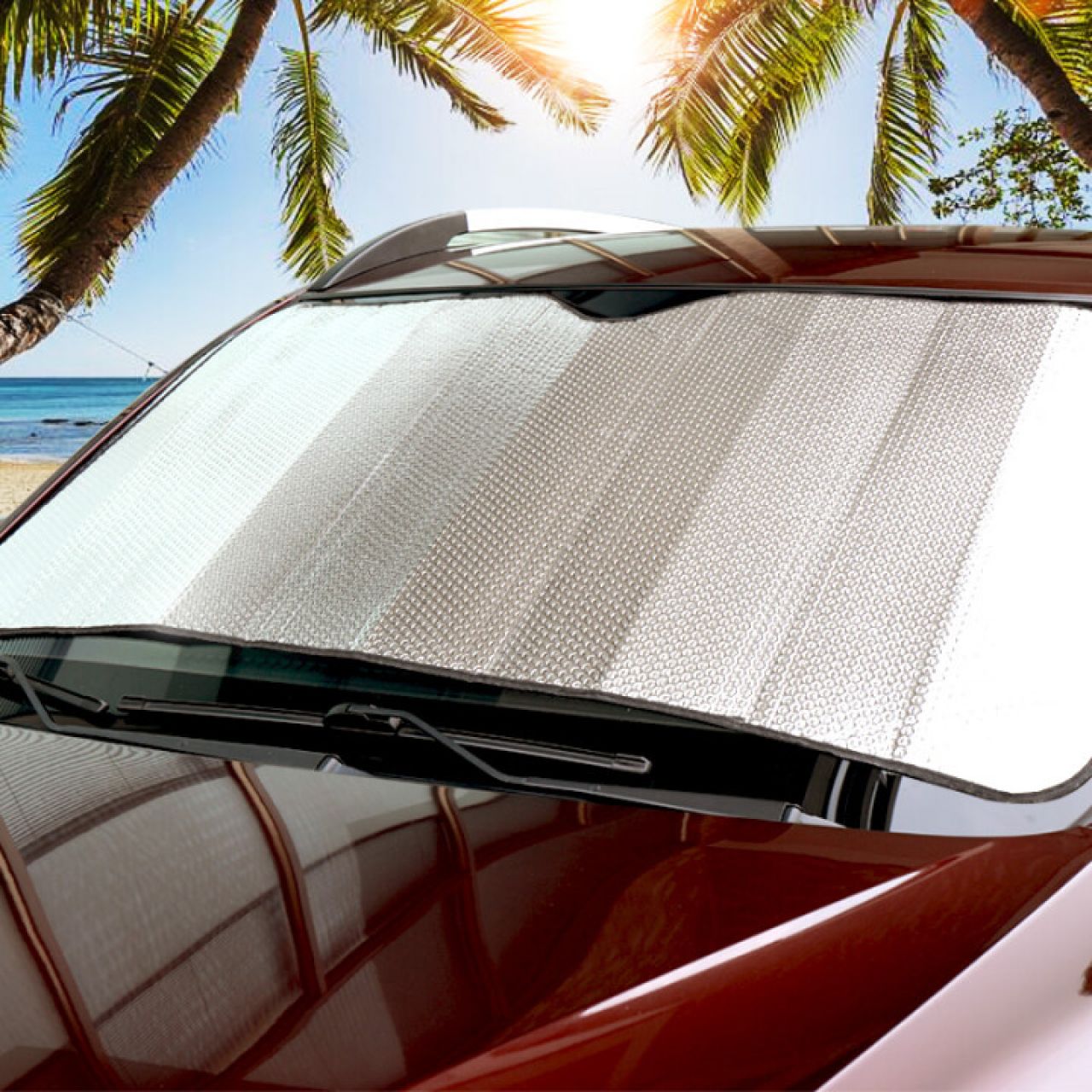 高反光汽车遮阳挡遮阳伞遮阳板车窗遮阳帘前挡遮阳防晒罩 银色