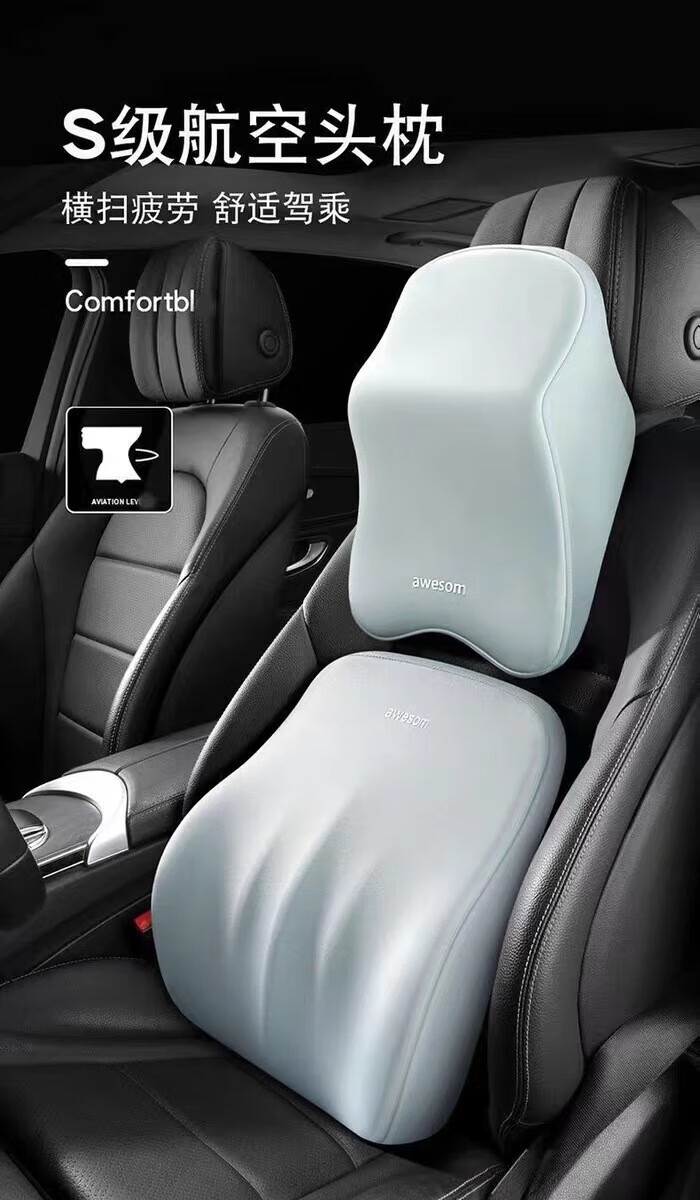 汽车头枕腰靠办公室护腰久坐不累车载靠枕座椅靠垫腰托记忆棉通用 环抱式支撑