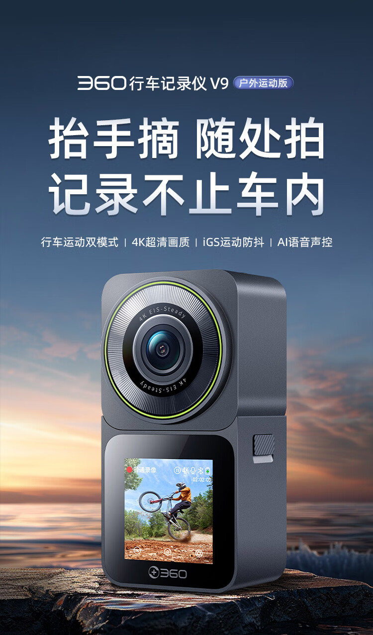 360行车记录仪V9 运动相机防抖 4K高清摄影机 骑行徒步vlog相机